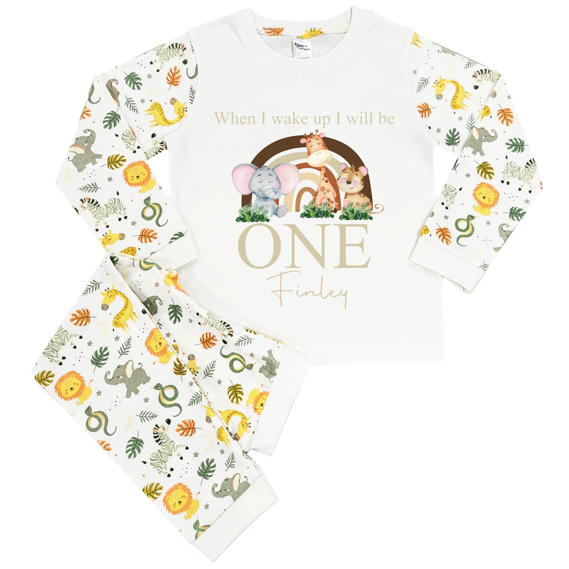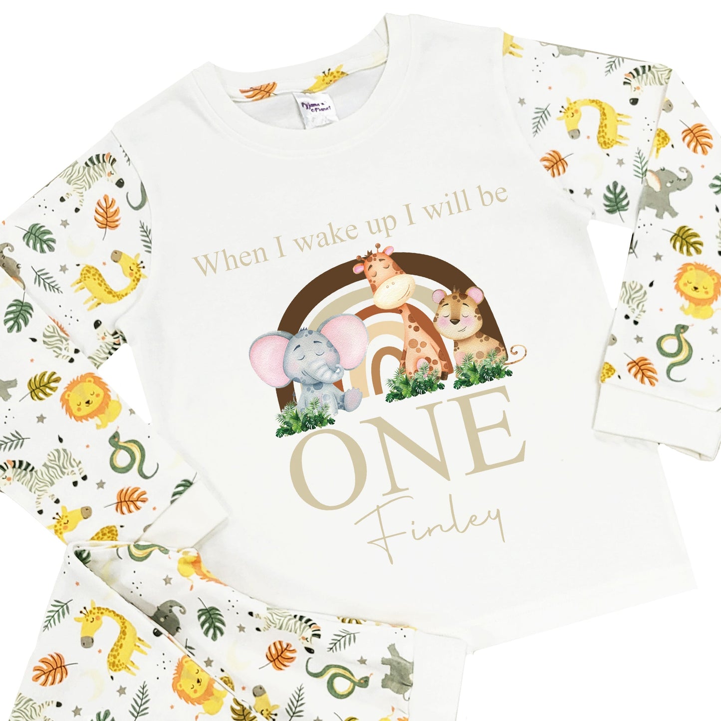 Personalised Jungle When I Wake Up Pyjamas - Jungle Beige Safari Rainbow