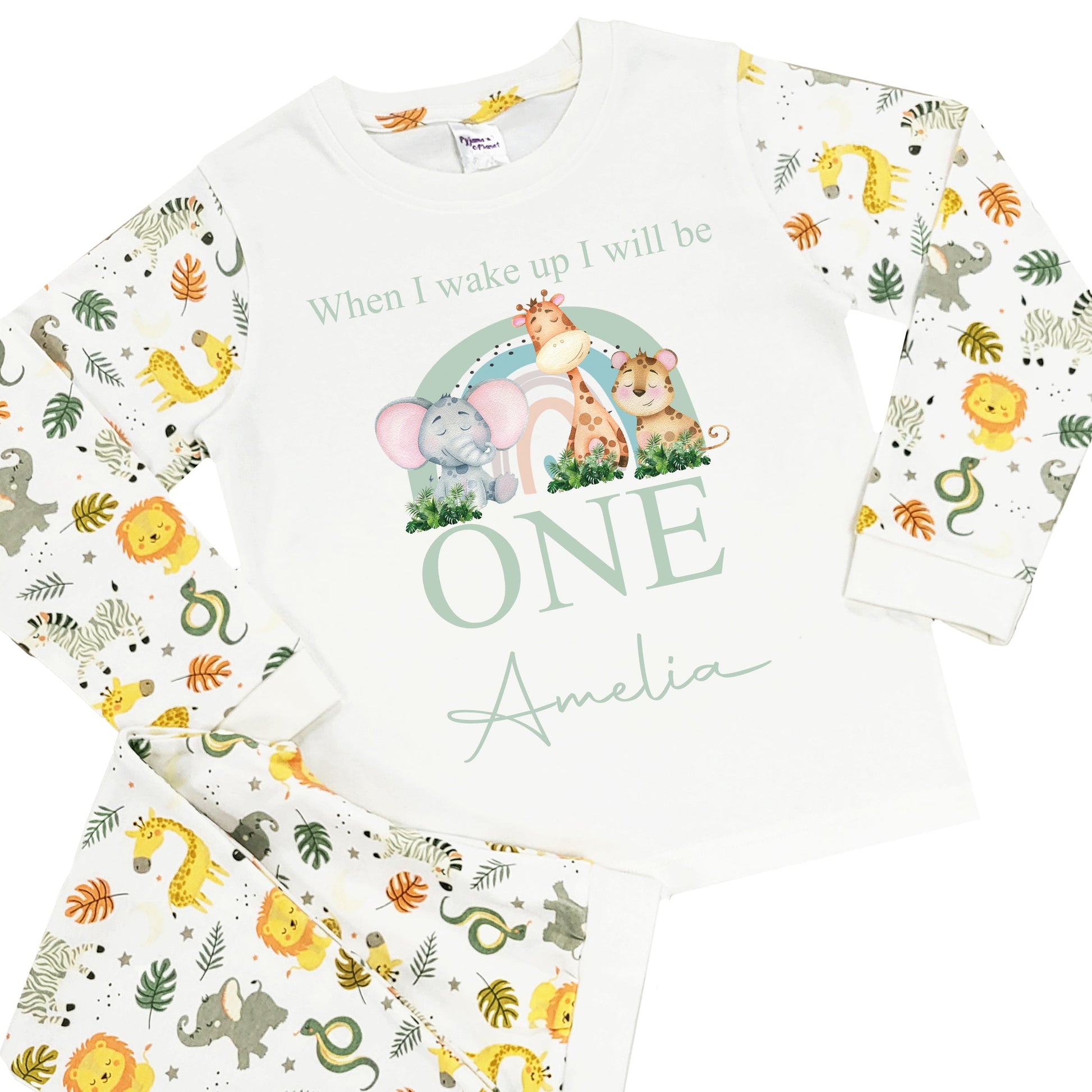 Personalised Jungle When I Wake Up Pyjamas - Jungle Sage Safari Rainbow