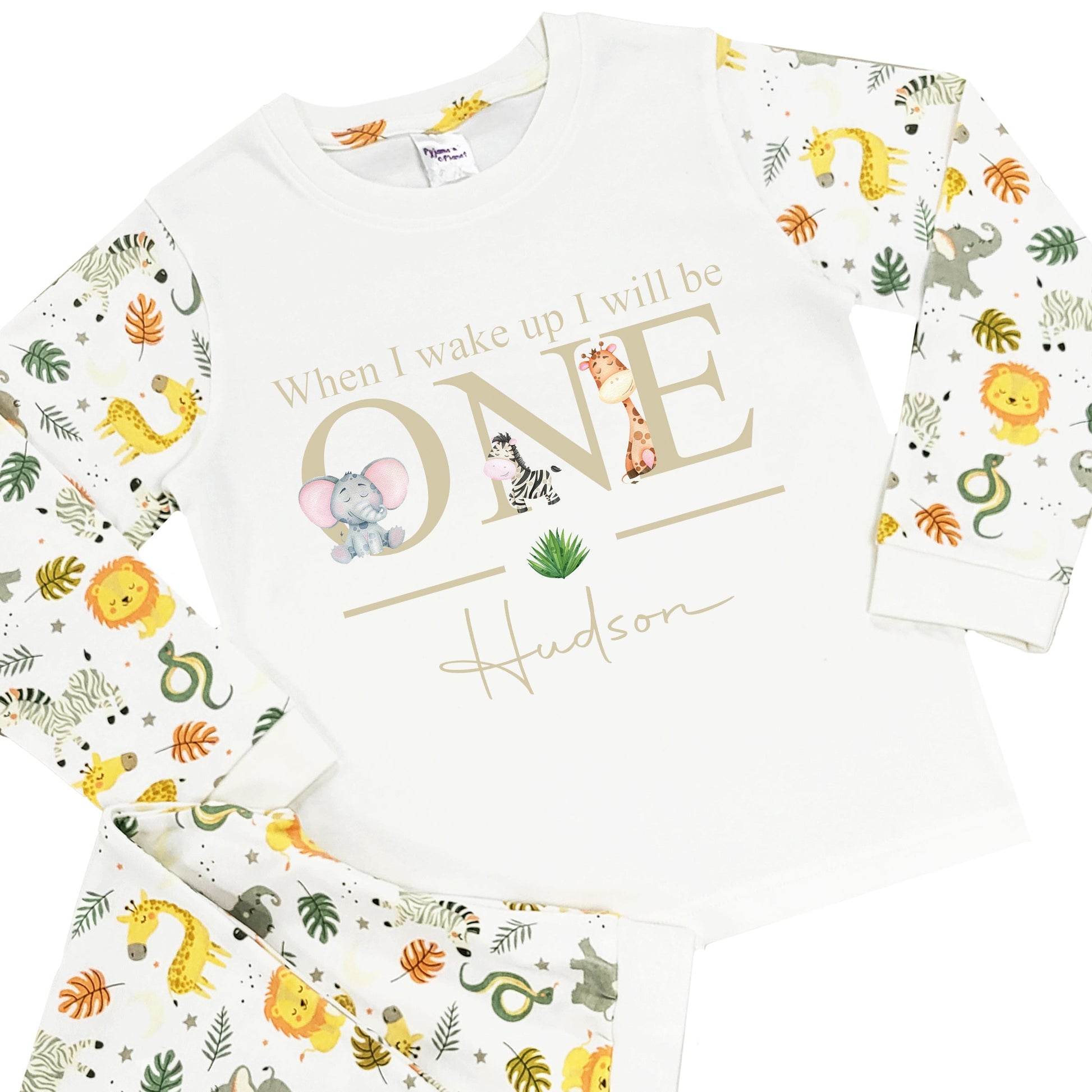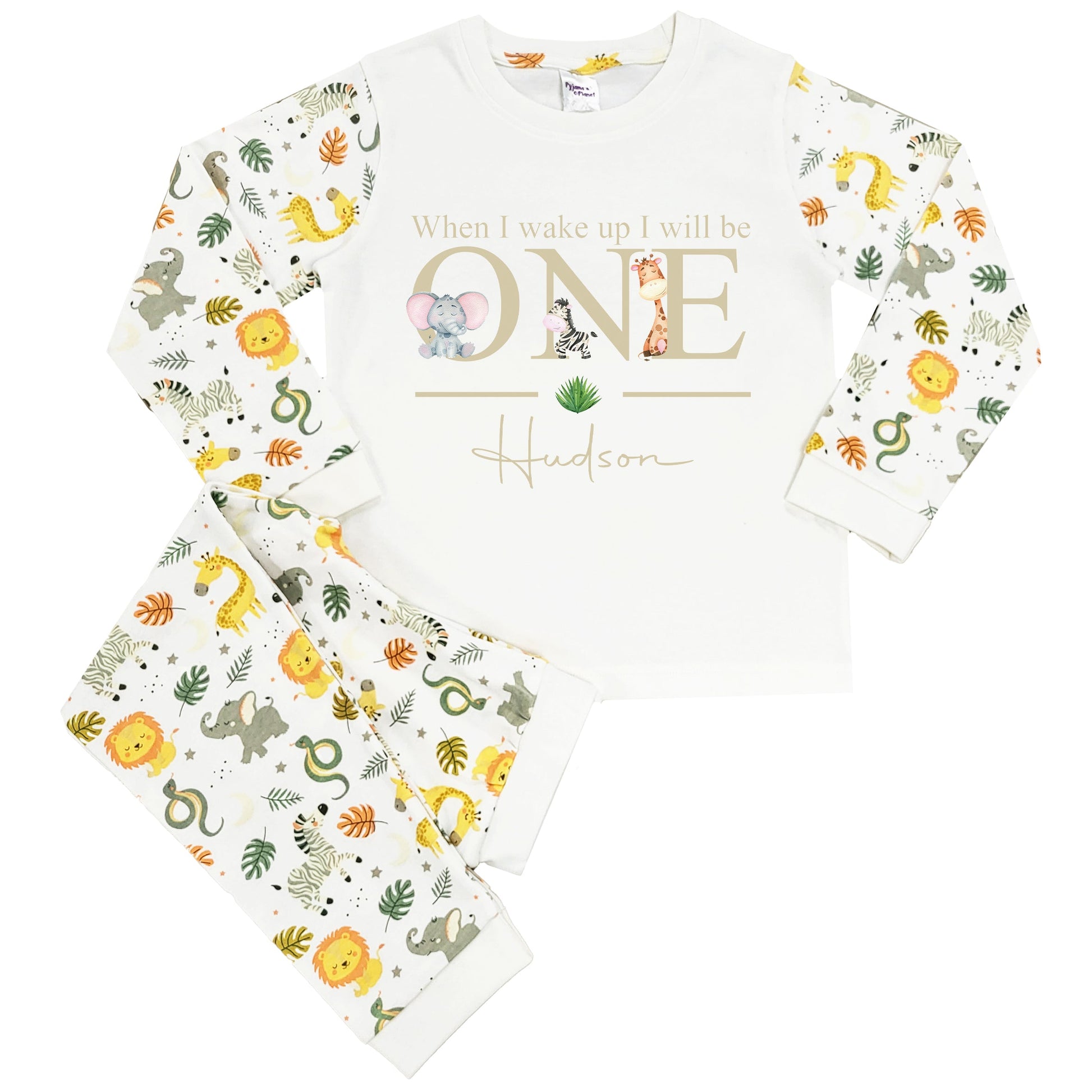 Personalised Girls Pink Safari When I Wake Up Pyjamas