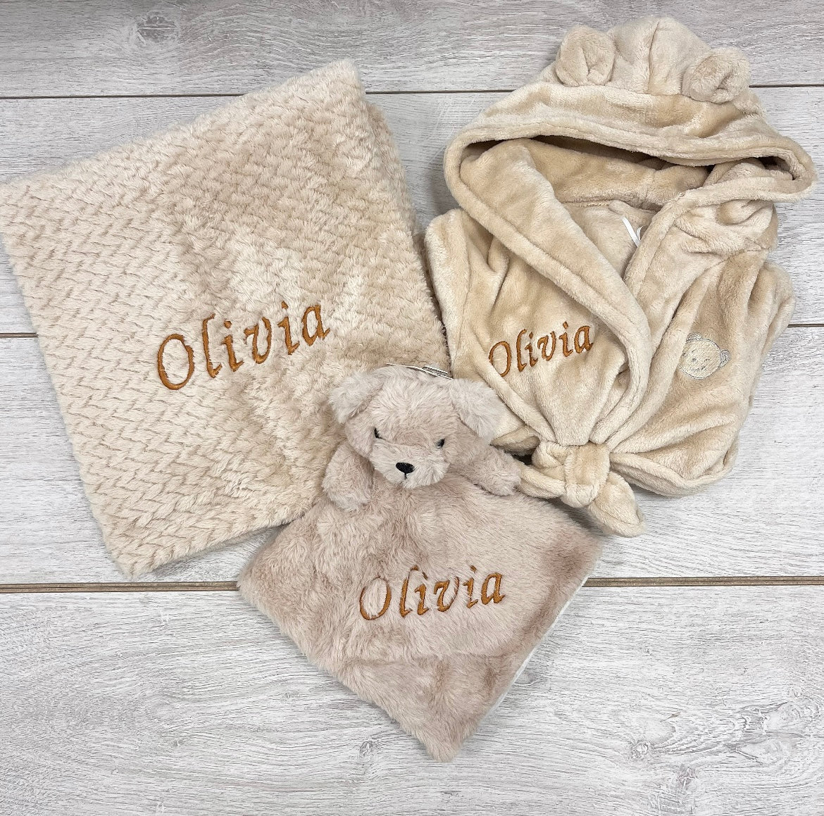 Beige Bear Dressing Gown, Blanket & Comforter Gift Set