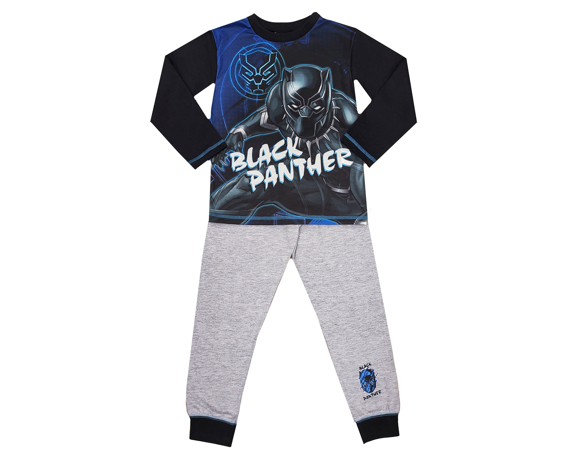 The Black Panther PJs set come with a long sleeved top, and contrasting elasticated waist bottoms. With cool Black Panther character images to the pyjama top and bottoms.