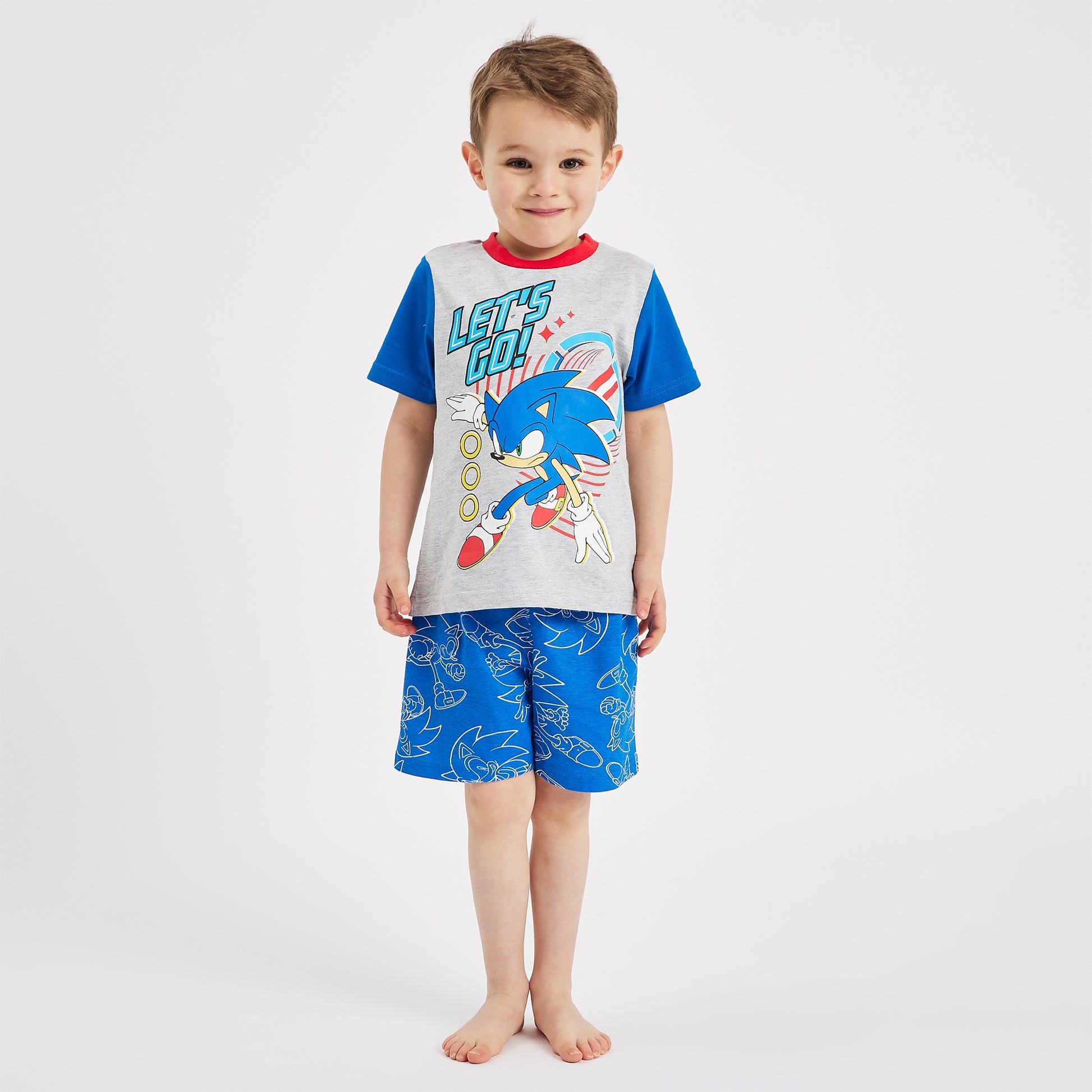 These boys Sonic the Hedgehog short pyjamas feature the speedster in a running pose surrounded by the iconic rings and Sonic wording Let's Go!