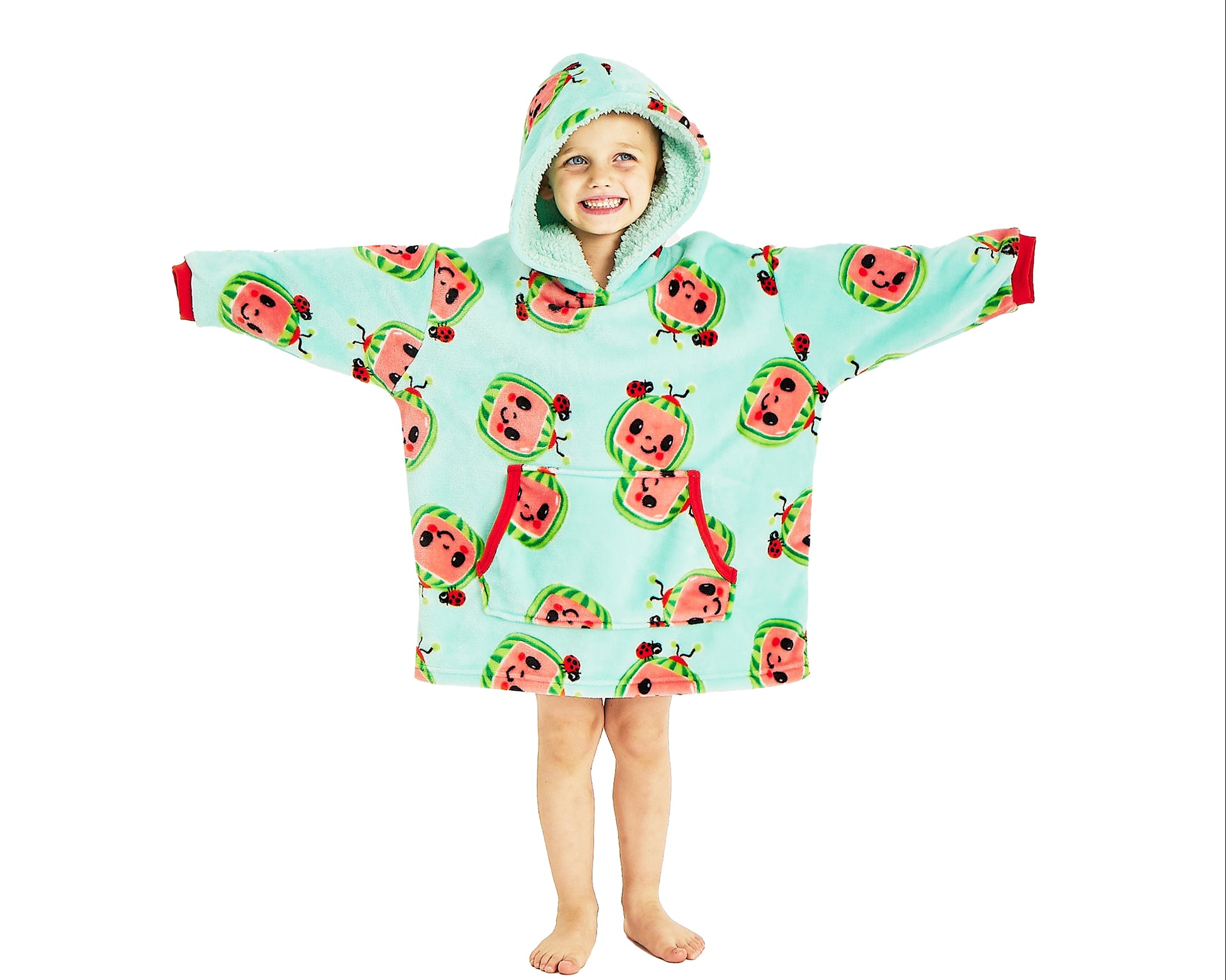 The kids Cocomelon oversized fleece hoody has long sleeves, and front roomy pocket with cosy hood. Perfect hoodie for both girls and boys.