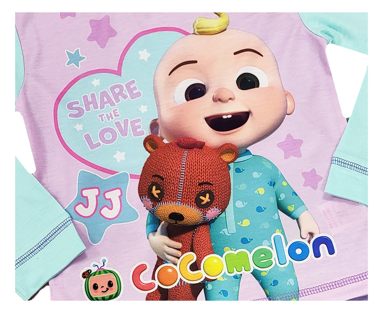 The Cocomelon PJs are gorgeous, they come with a long sleeved top with Cocomelon characters to the front.