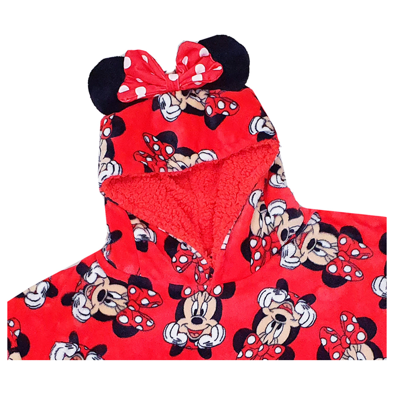 Featuring Minnie Mouse images throughout. With a lovely addition of cute Minnie Mouse 3D ears and bow to hood!