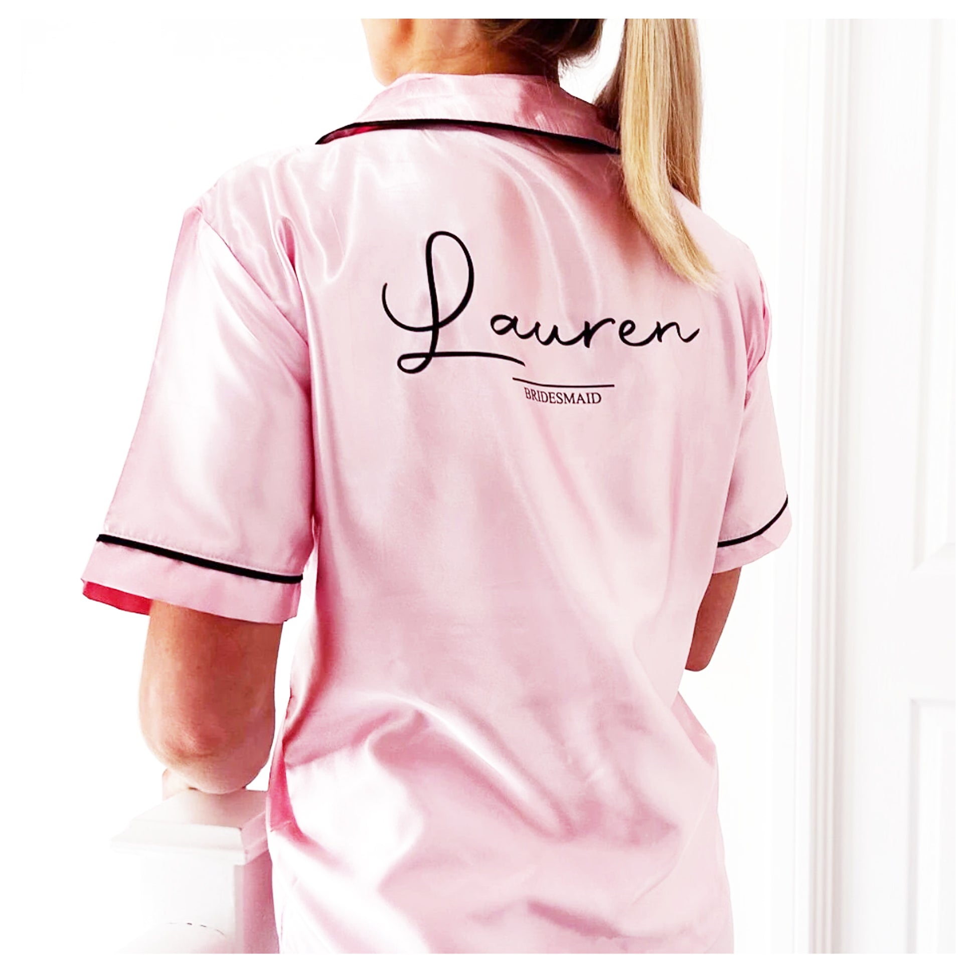 Personalised Ladies Wedding Bridal Party Satin Short Pyjamas