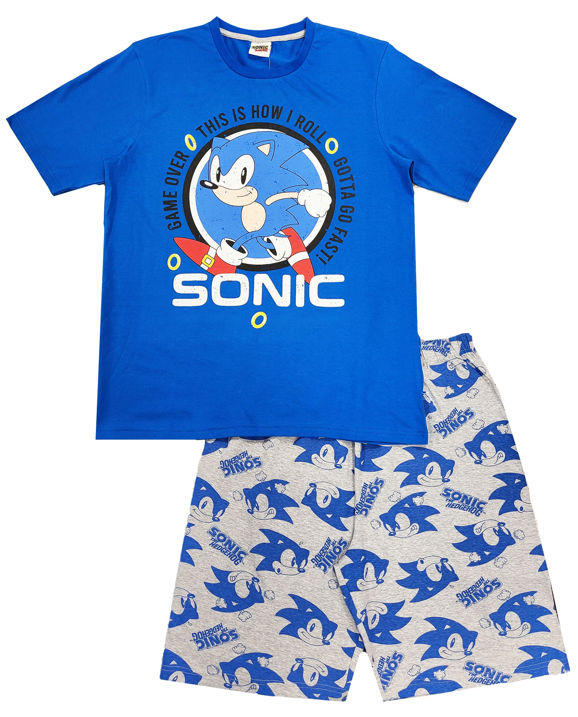 The adults short Sonic pyjamas have a great short sleeved top with short patterned pyjama bottoms. With the iconic Sonic the Hedgehog character images to the top front and the slogans “Game Over”, “This is how to Roll”, Gotta to go Fast”.