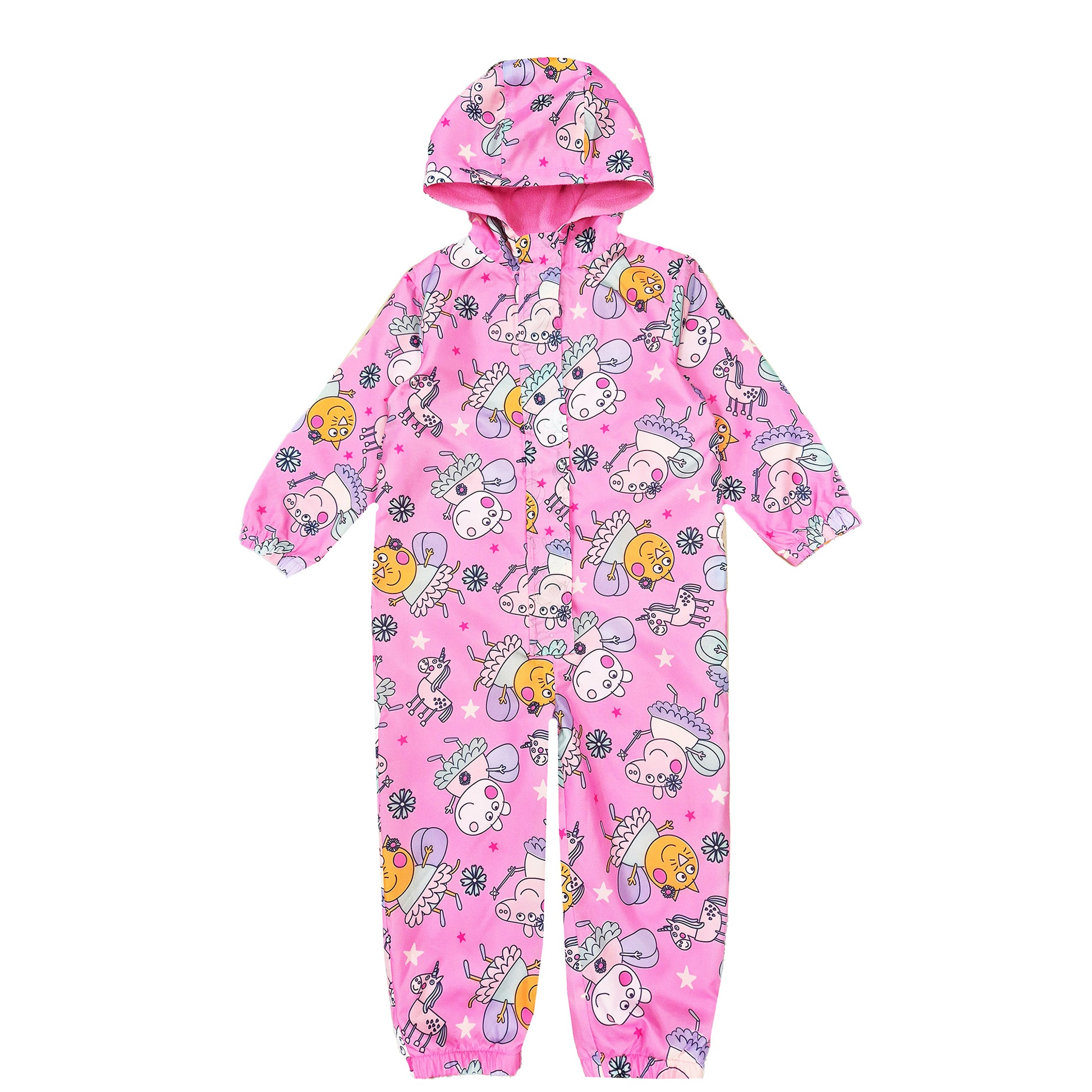 FUN AND COLOURFUL DESIGN: Make rainy days magical with this adorable girls’ puddle suit. Featuring a playful Peppa Pig fairy-tale print on a bright pink background, it’s designed to bring fun and colour to every outdoor adventure. Perfect for splashing in puddles, this all-in-one is as practical as it is cute.
