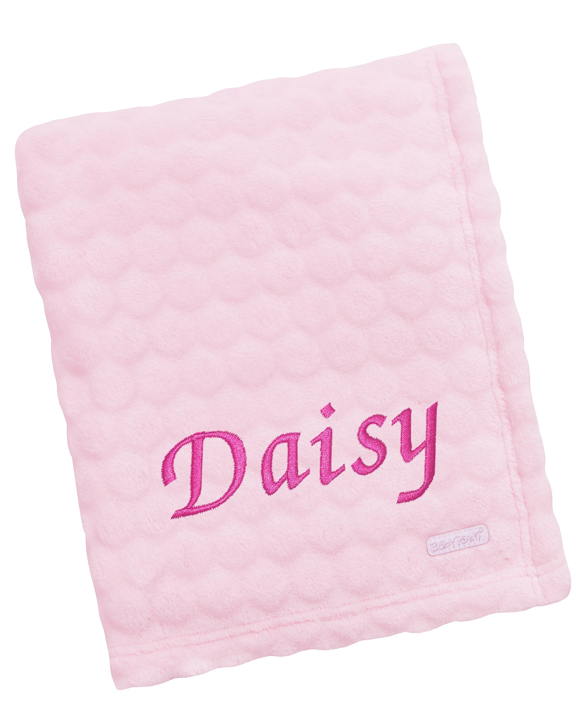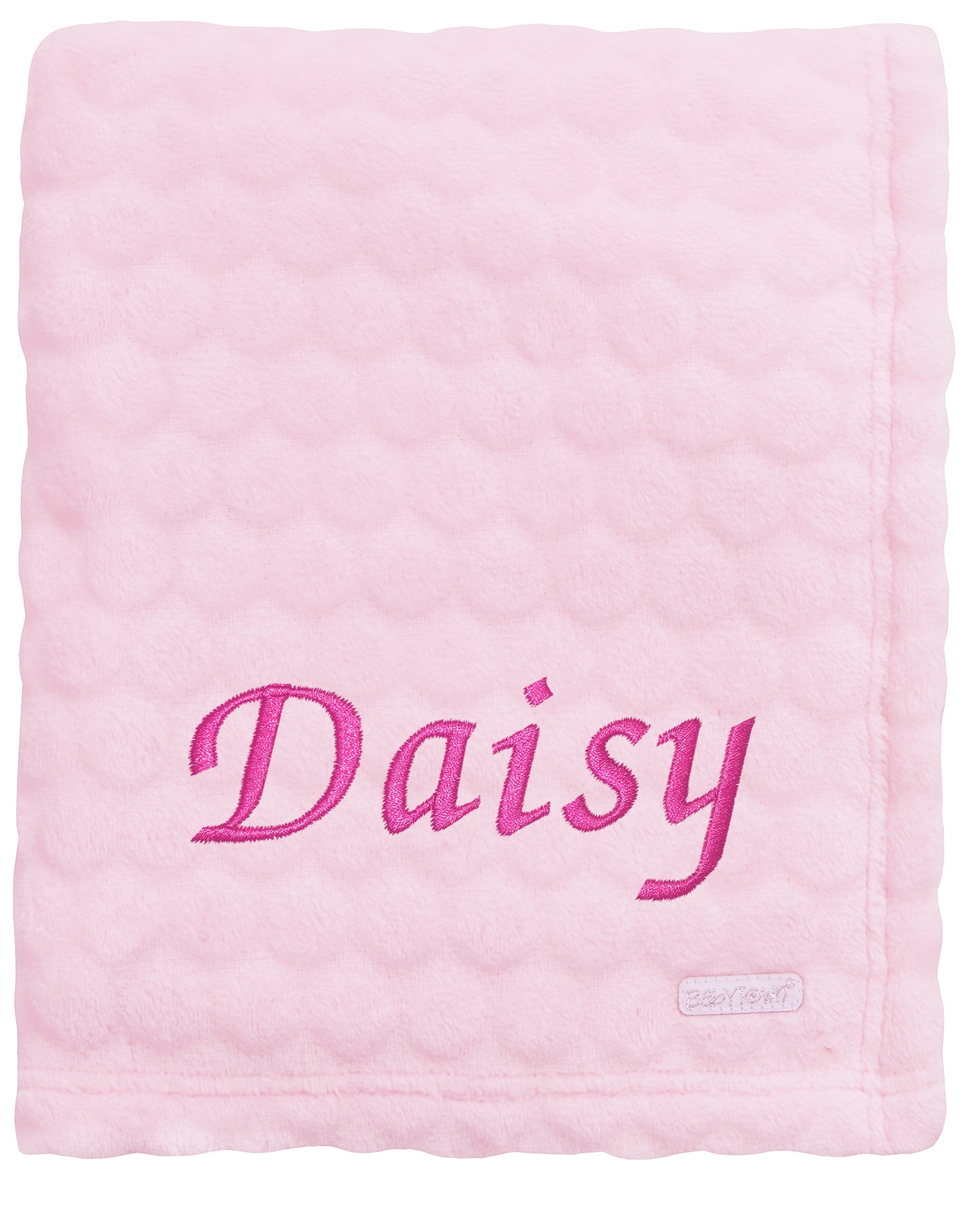 These are gorgeous soft personalised baby pink blankets, with a delicate spotty polka dot design throughout.