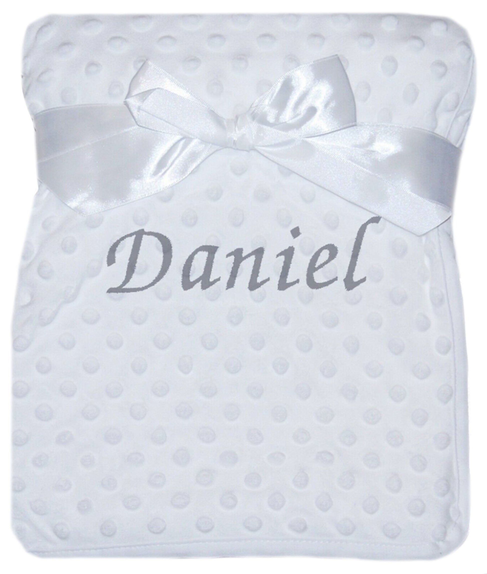 ☆ LOVELY DESIGN: The fleece baby blankets come in several colours, with a lovely bobble design throughout and the blanket will be embroidered on the front with a name.