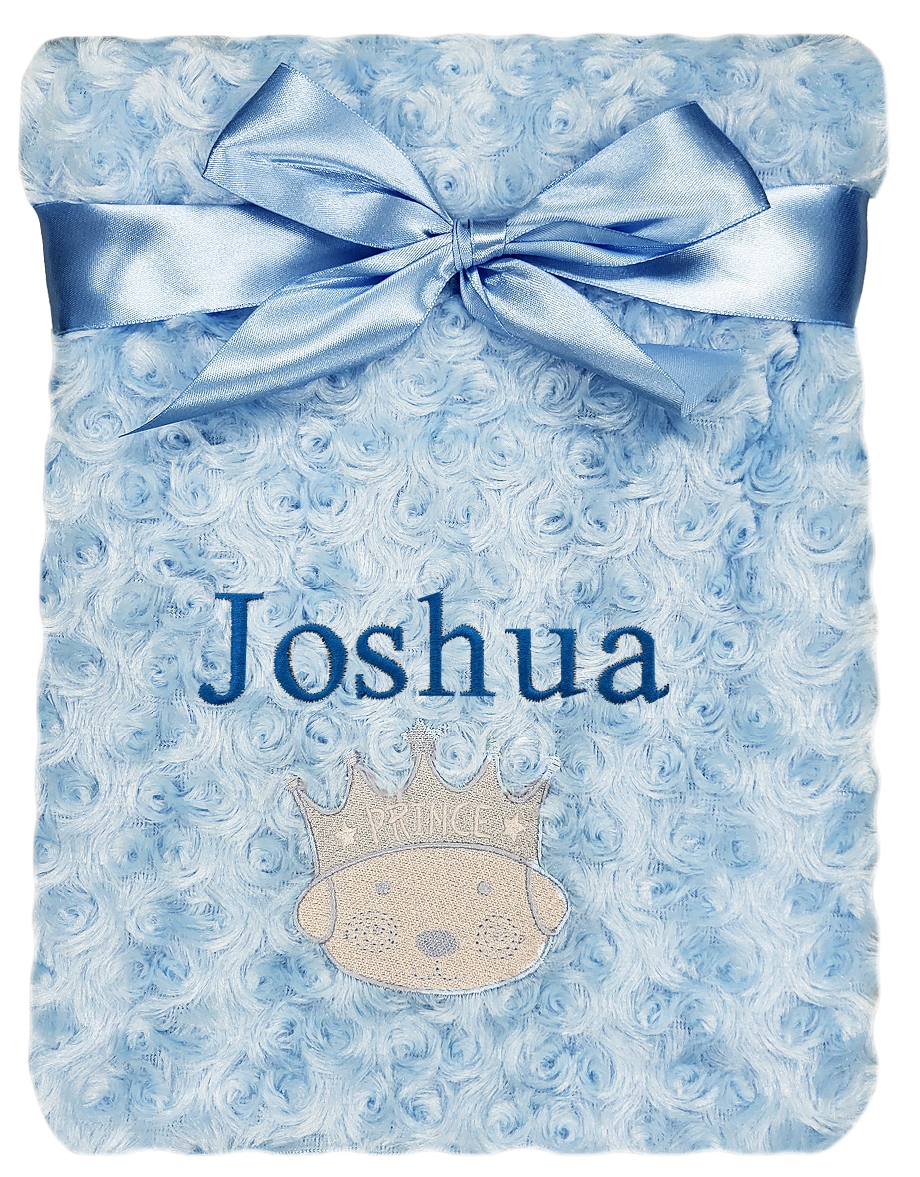 Gorgeous personalised soft baby blanket, with the personalised name embroidered in blue in the corner.