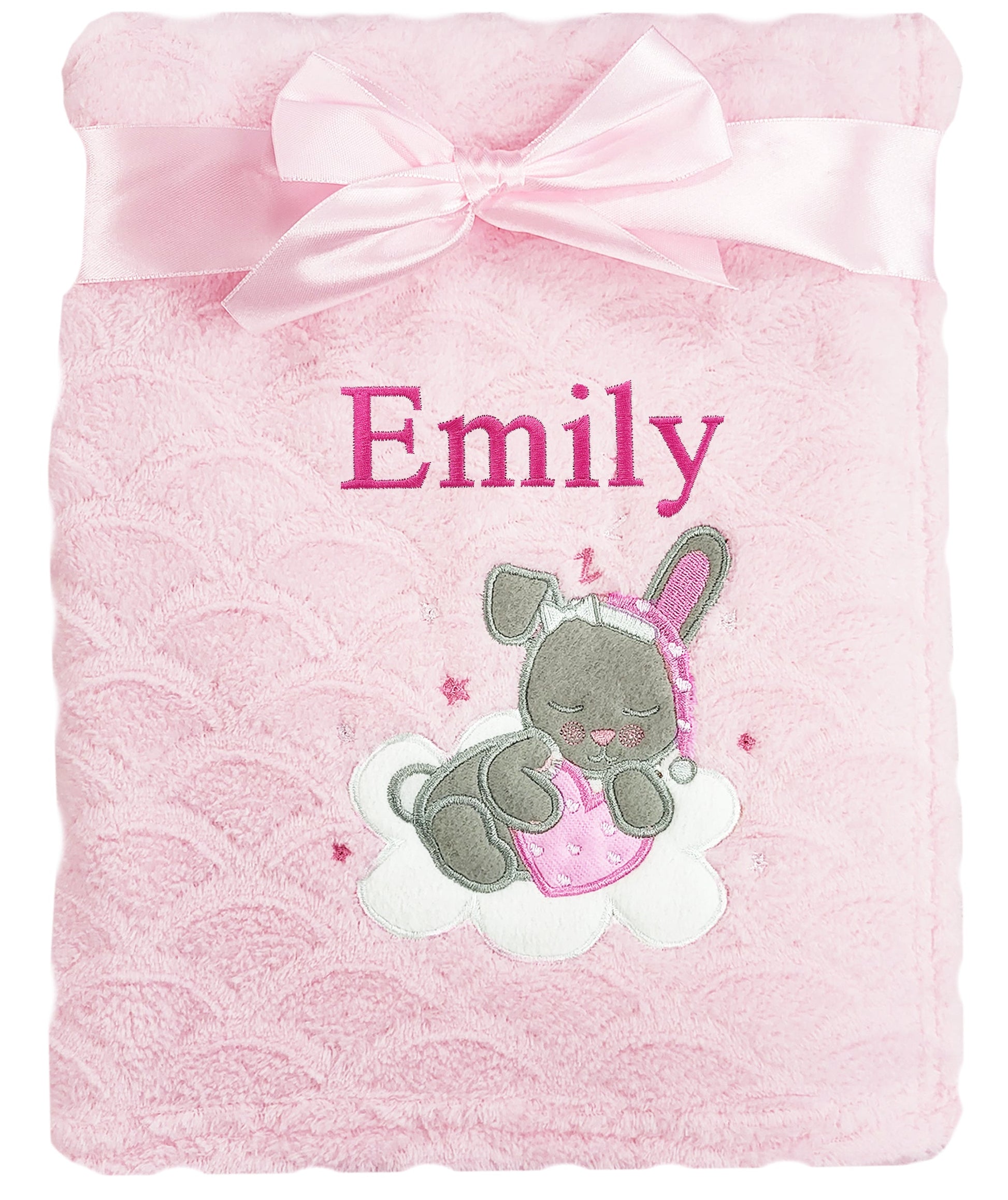 Girls Personalised Pink Rabbit Soft Fleece Blanket