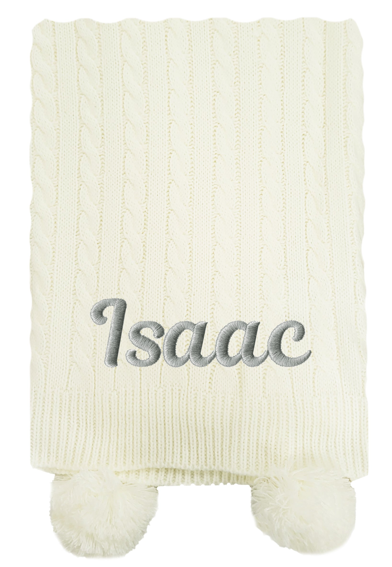 Personalised Baby Knitted Pom Pom Blanket - Cream