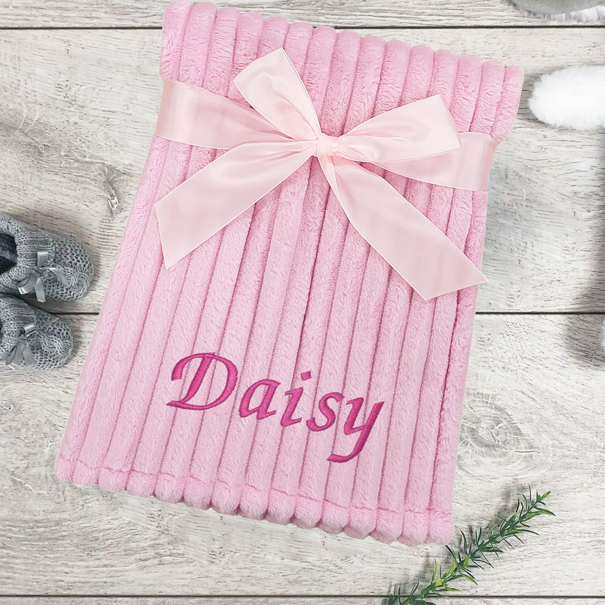 Baby Boy Girl Personalised Soft Fleece Pink Blanket