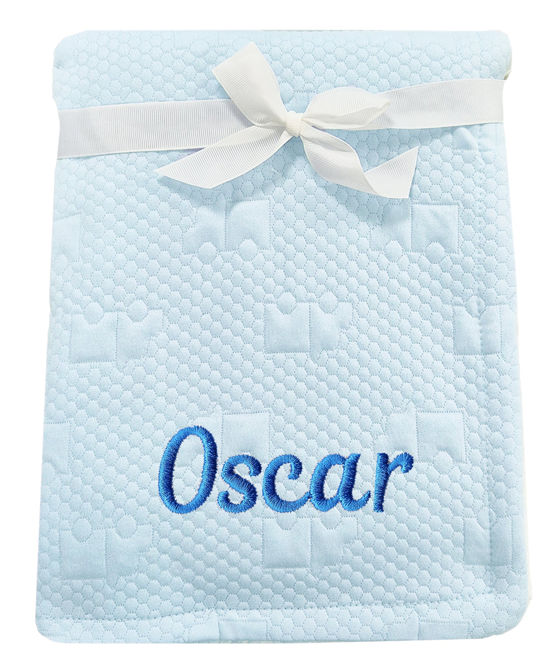- Customisable Embroidery: Add your baby's name or a special message to create a unique keepsake. Our high-quality embroidery ensures the name stands out beautifully against the blue pattern.