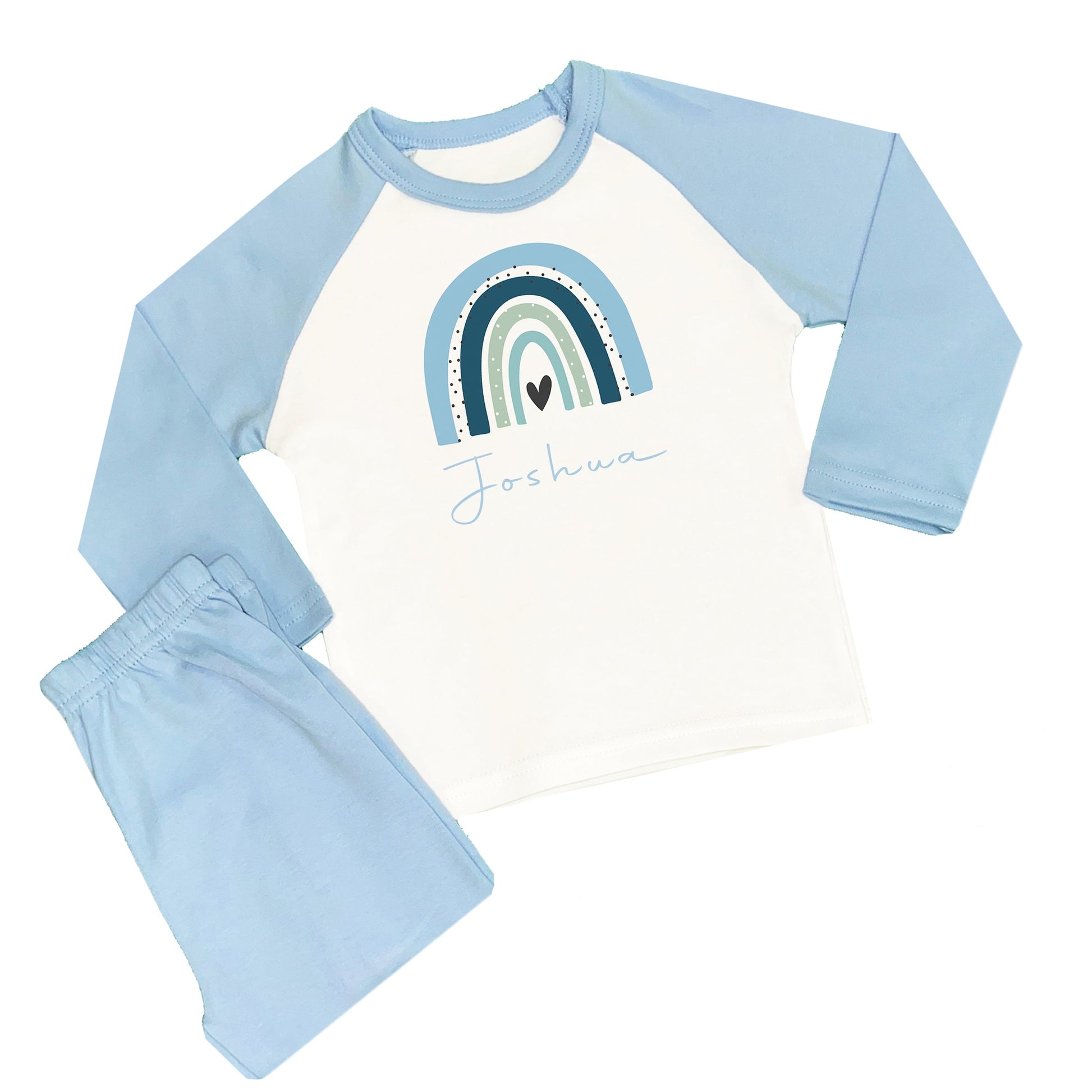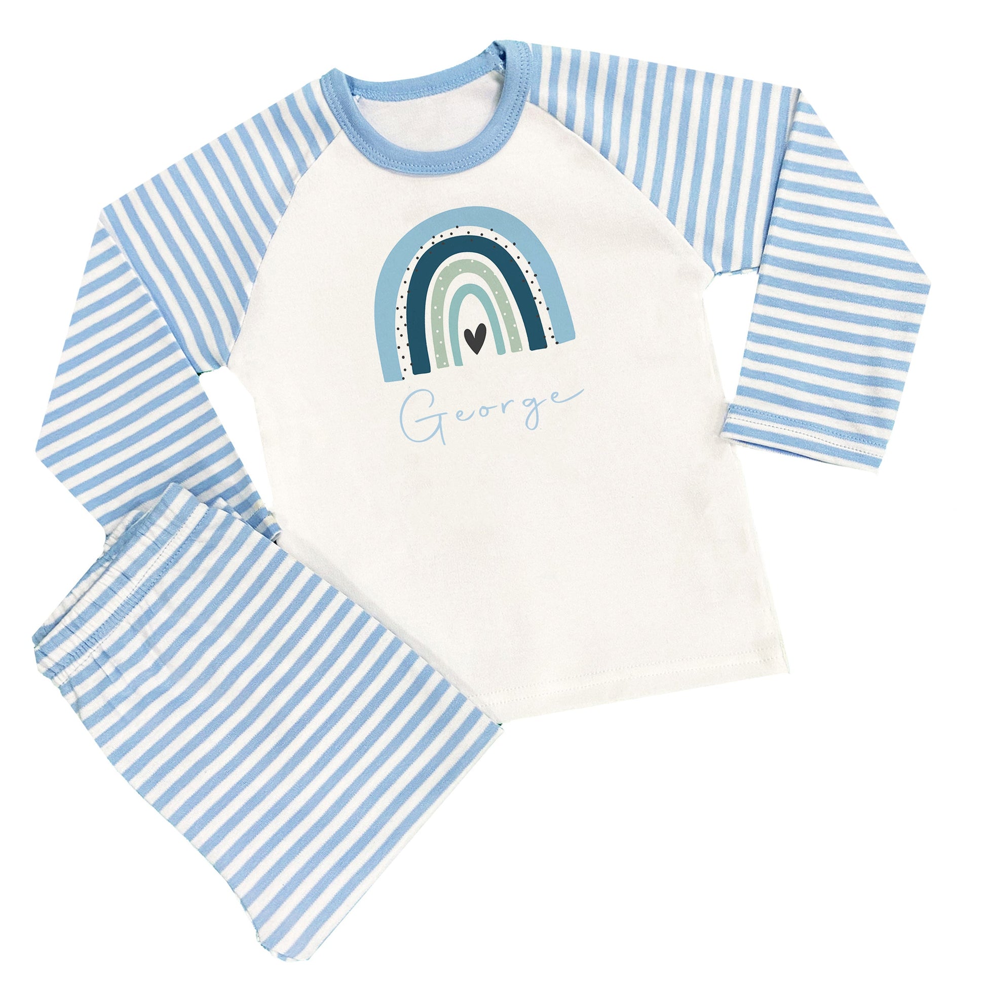 PERSONALISED RAINBOW PYJAMAS: Brighten up your little one's bedtime with our Personalised Boys Pyjamas, available in delightful designs! Each set is made from soft, breathable cotton to keep your child comfortable all night long, and can be customised with their name for a special personal touch. Perfect for any occasion, these pyjamas will make bedtime extra fun!