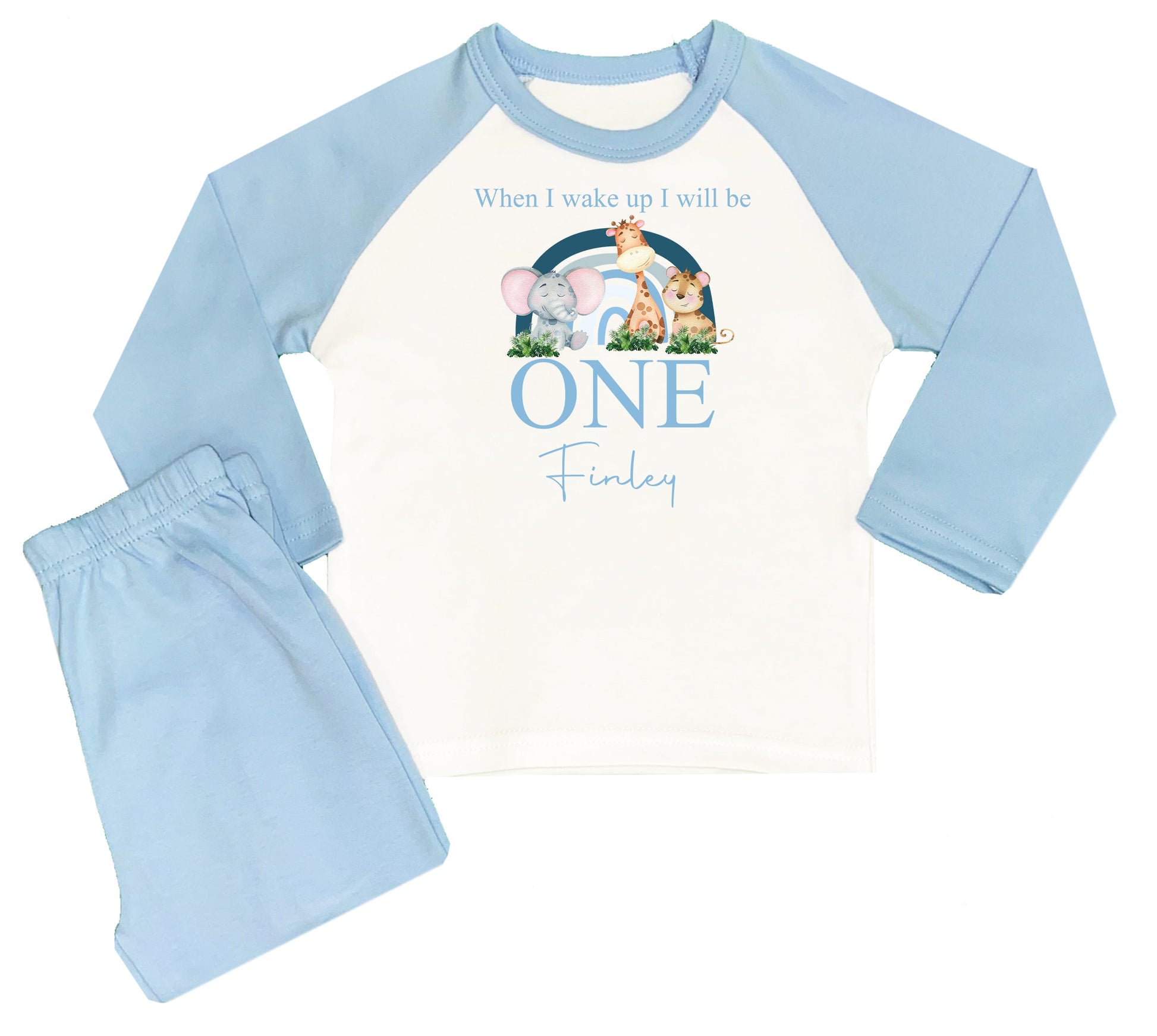 Personalised Boys Blue Safari Rainbow When I Wake Up Pyjamas