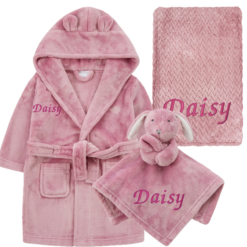 Personalised Dusky Pink Robe, Blanket & Comforter Gift Set