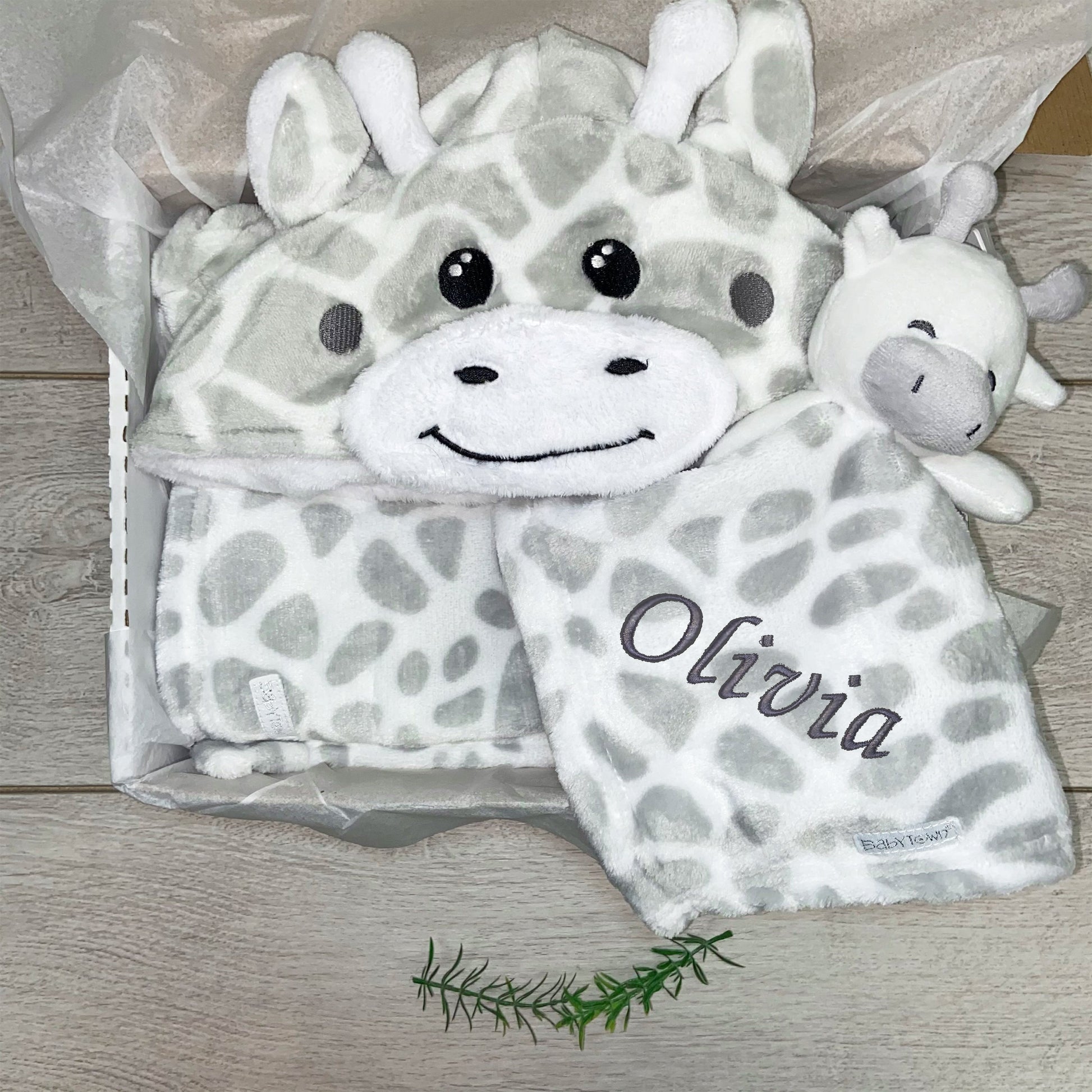 Bring the zoo closer to home with our brand new Giraffe Baby Bundle! Our new Personalised Baby Gift Set will make the perfect Baby Shower Gift, or would equally be perfect as a Home from Hospital Surprise!