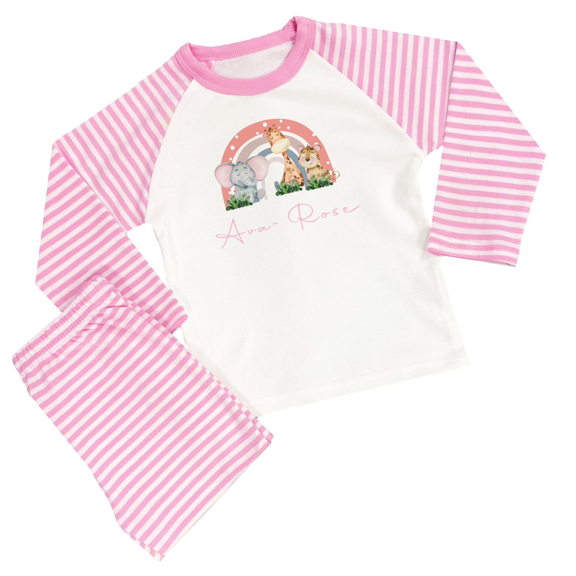 Personalised Girls Pink Safari Rainbow Pyjamas