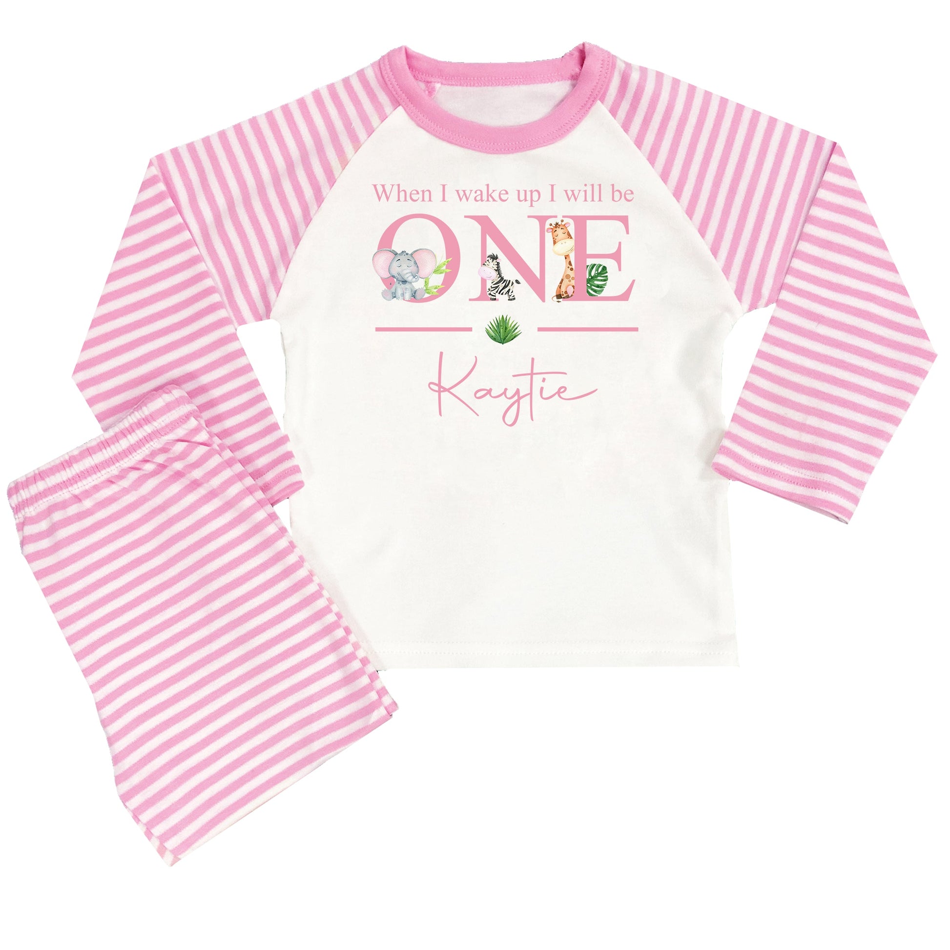 Personalised Girls Pink Stripe Safari When I Wake Up Pyjamas
