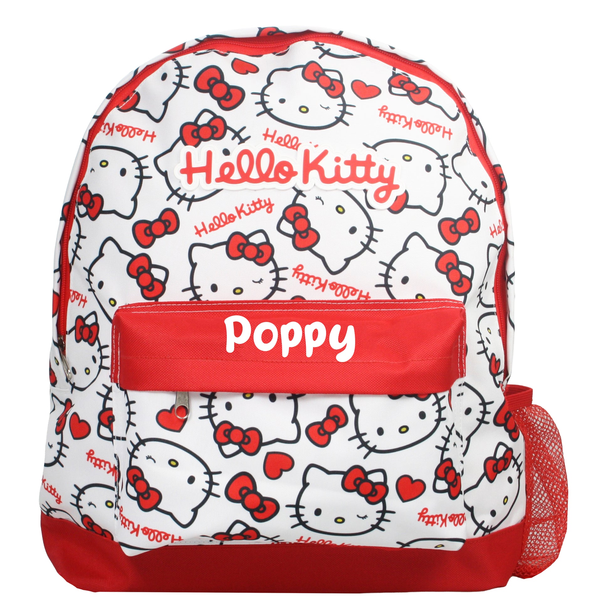 CUTE & ICONIC HELLO KITTY STYLE: Make school days even more fun with our adorable Girls Personalised Hello Kitty Backpack. Featuring the world-famous Hello Kitty surrounded by bows, this charming design is perfect for any little fan who loves a splash of red and white cuteness.