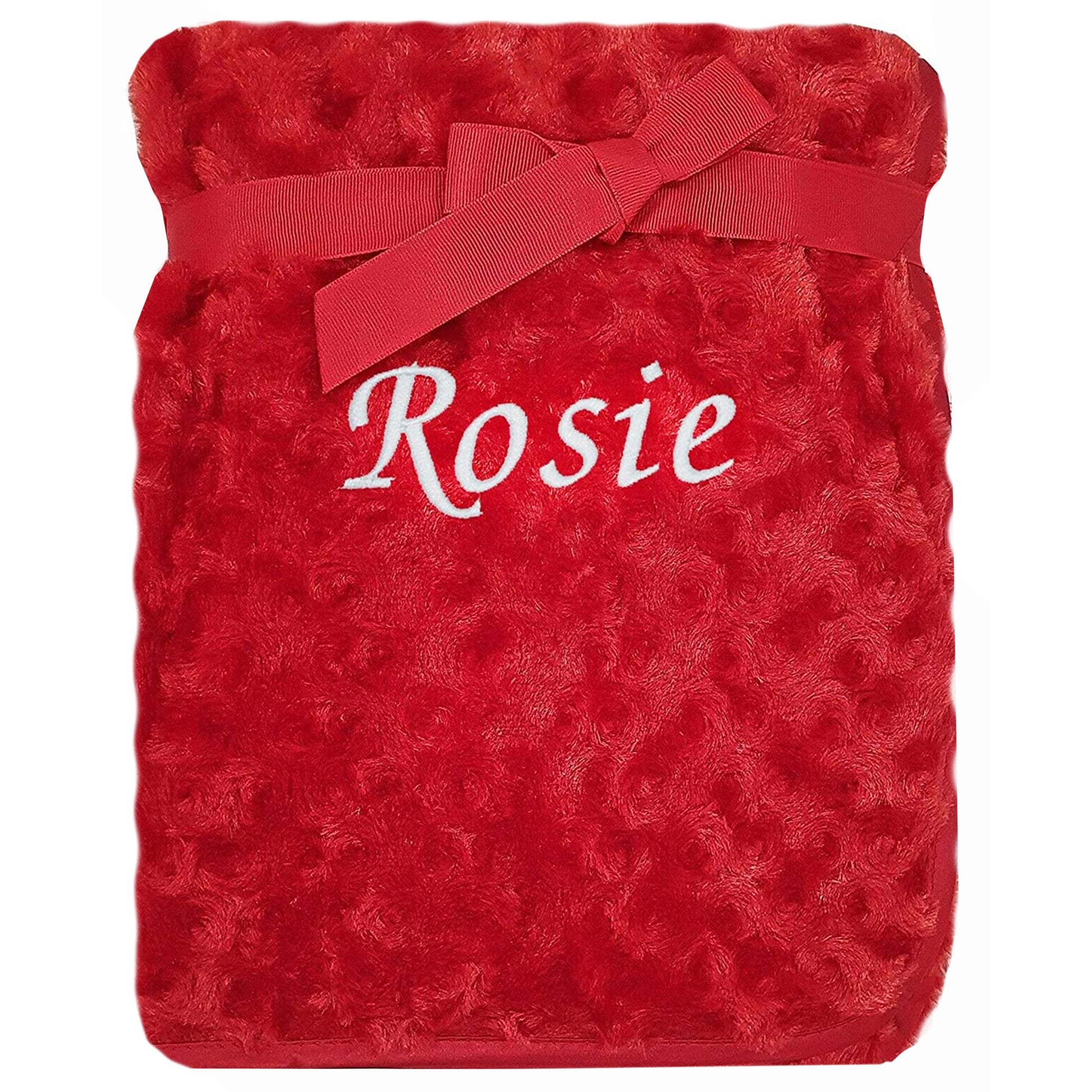 Baby Personalised Soft Fleece Red Rosebud Blanket