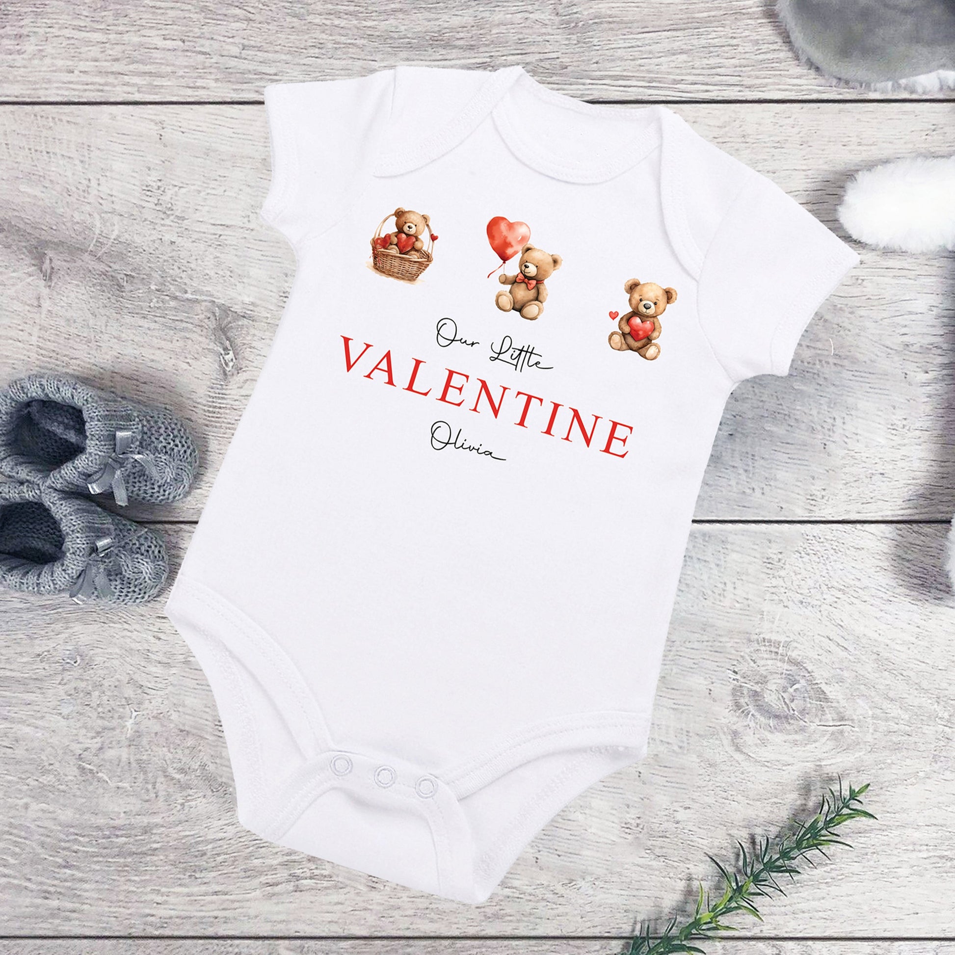 ADORABLE FIRST VALENTINES BABY BODYSUIT: Make Valentines Day extra special with our delightful Baby Personalised Valentines Bodysuit. Featuring adorable teddy bear designs with wording, these baby bodysuit vests bring joy and excitement to their first Valentines Day. The white Valentines bodysuits have a short sleeves, press stud poppers and envelope opening neck for ease of dressing. The baby bodysuits will be personalised with their name, making the bodysuits a unique and special gift.